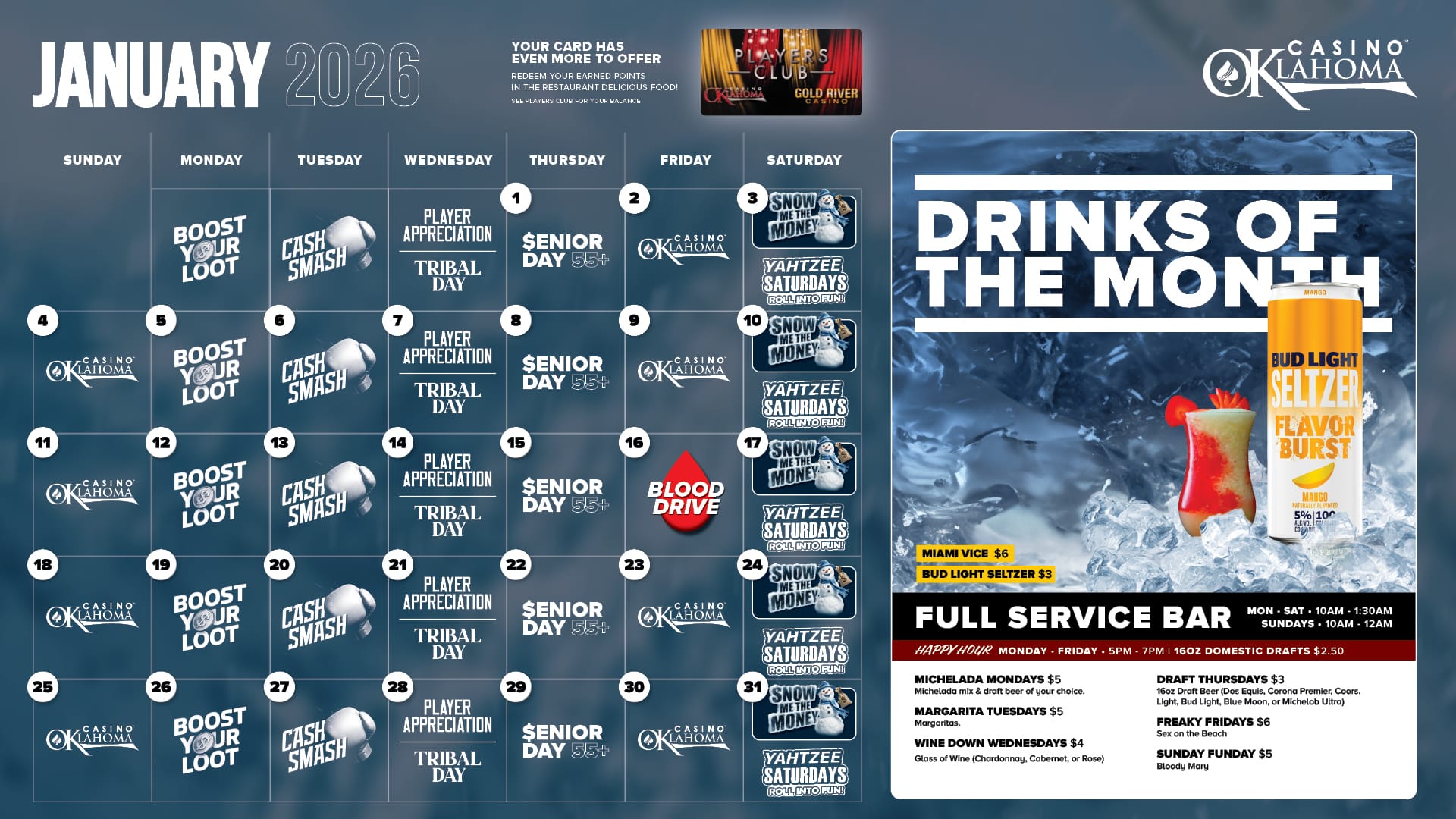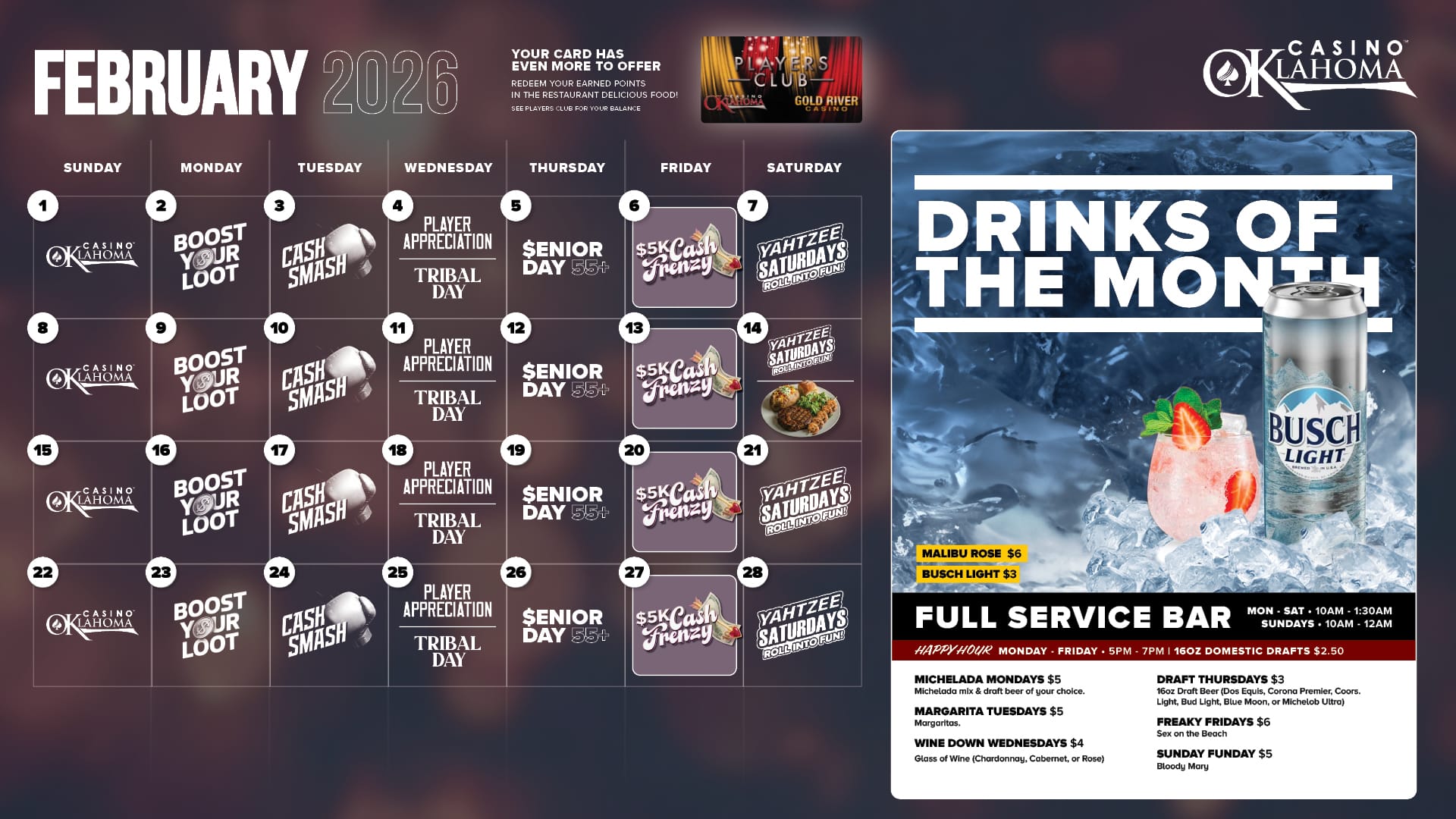 Hot seat drawings will be held every 30 minutes from 4PM to 8PM. To qualify for the hot seat drawings, just be actively gaming with your Players Club card.