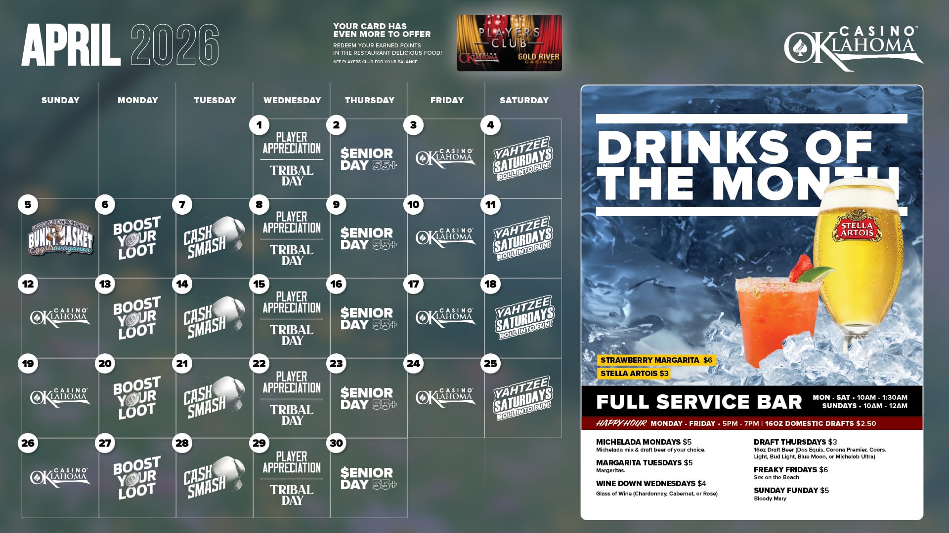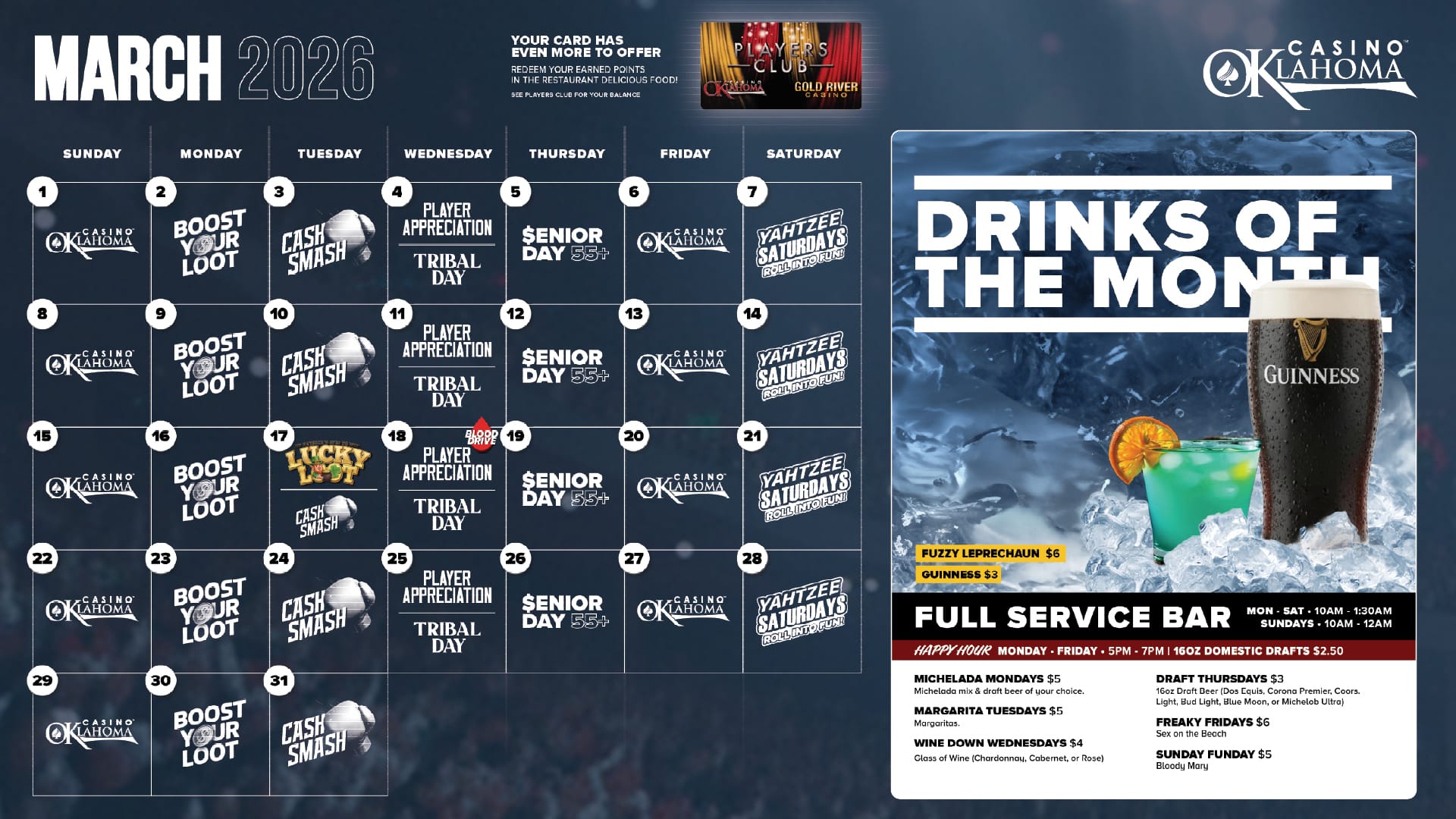 All you need to do is be actively gaming with your Players Club card during drawing times. If selected, you’ll roll the dice and see what fate has in store!